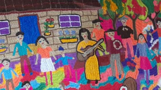 Exposición de Bordadoras de Copiulemu. (Sello de Excelencia Artesanía 2010 Chile). Muestra de tapices con la vida de Violeta Parra. Colaboración Casa Museo Violeta Parra de San Carlos.